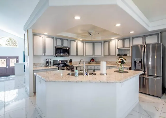 Les équipements de cuisine des propriétés Villa Sin City'S Hidden Gems comprennent une bouilloire électrique, un réfrigérateur et de la vaisselle, fournis dans un coin repas. Servant des plats thaïs, Siri Thai est à côté. L'aéroport international McCarran de Las Vegas est accessible en 12 minutes en voiture depuis villa.